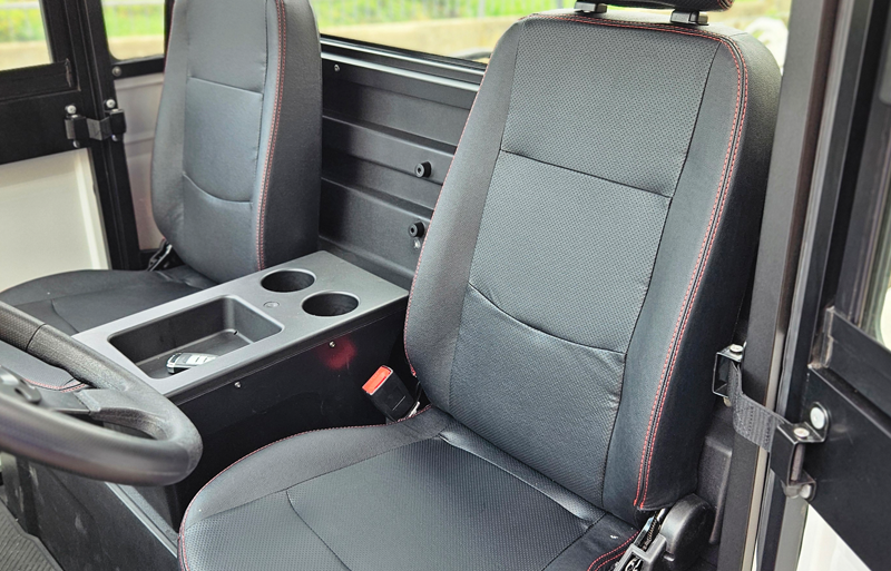 UTV elettrico 4WD, cabina chiusa, 2 posti con cassoncino. Il veicolo si adatta a differenti utilizzi sia in ambito privato sia come macchina operatrice immatricolata, ad esempio: utilizzo in aree agricole e forestali, operazioni di manutenzione all’interno di siti industriali, parchi e giardini